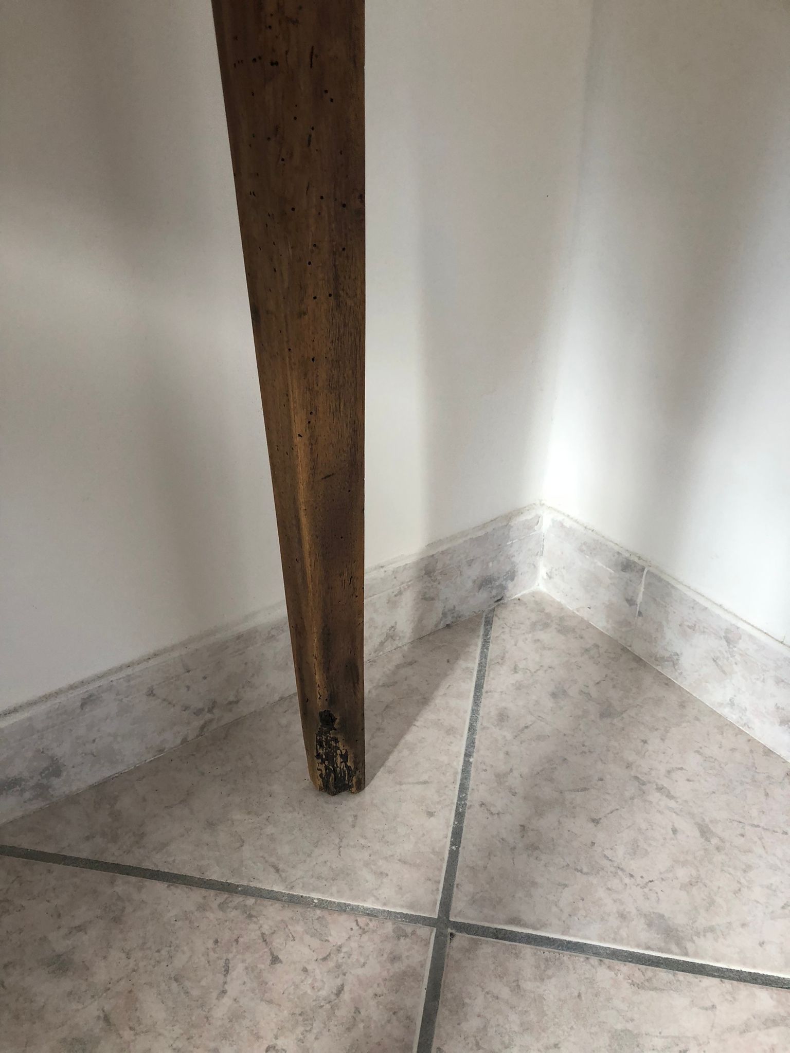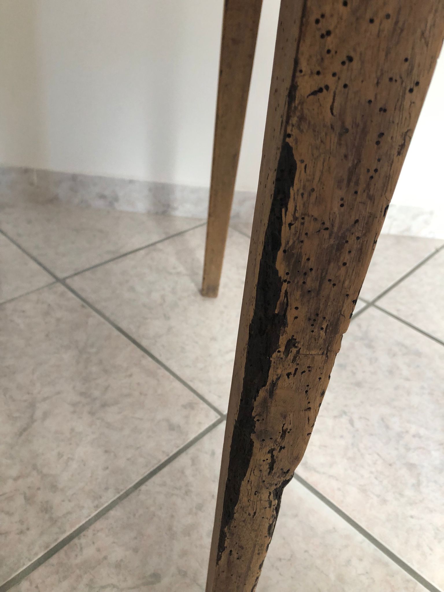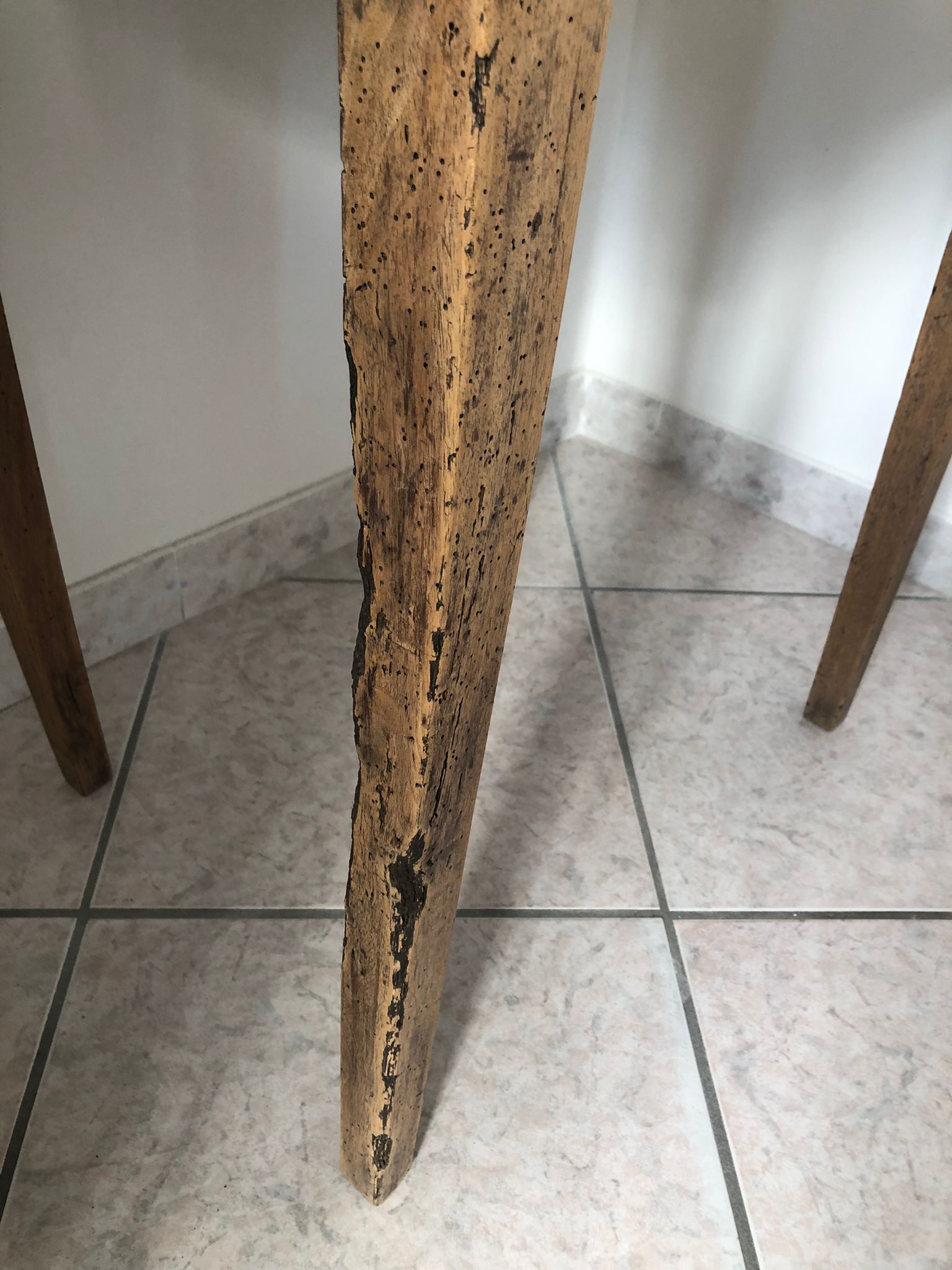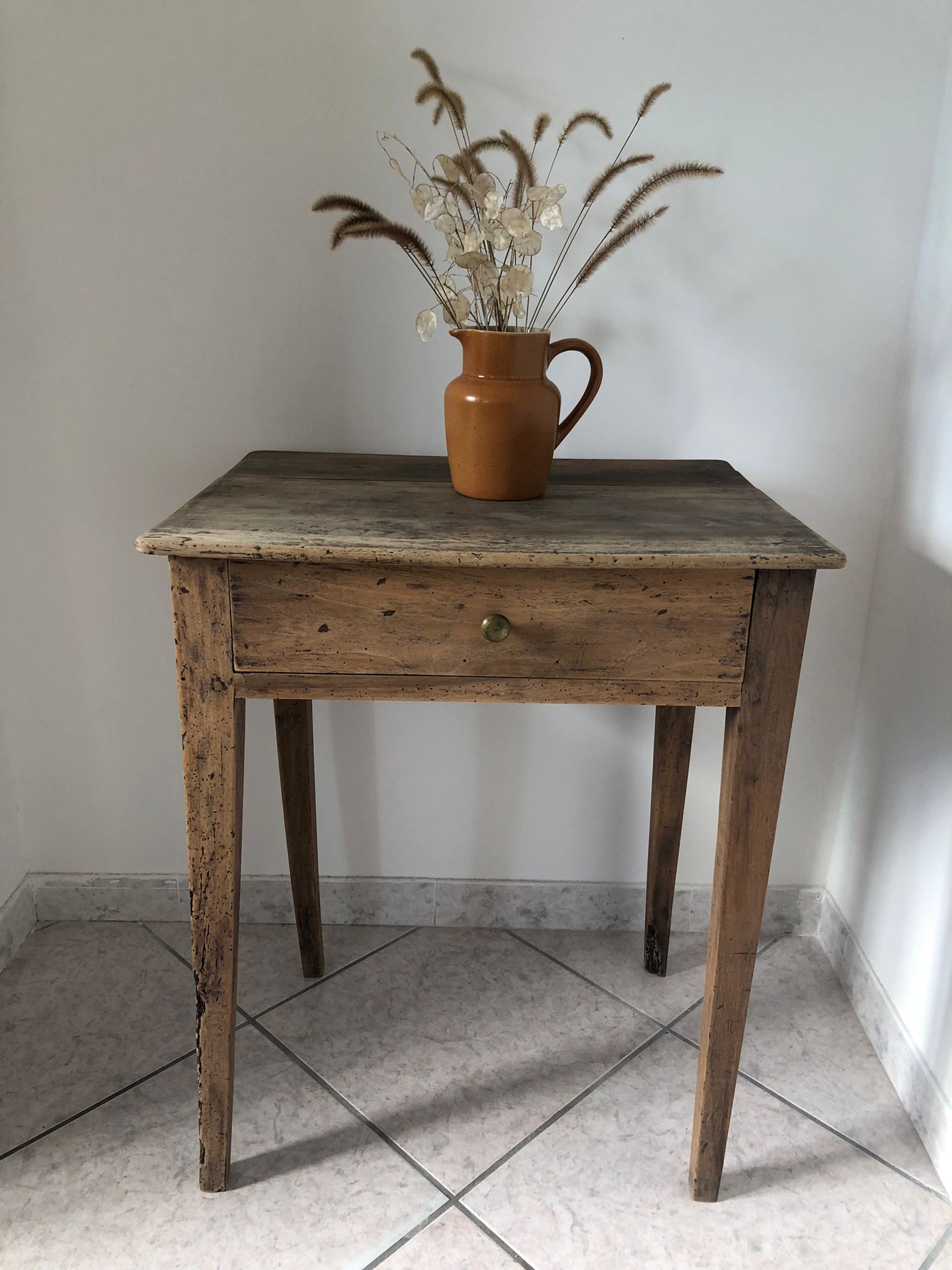 Petite table dans son jus. La table est très ancienne avec trace du temps passé.